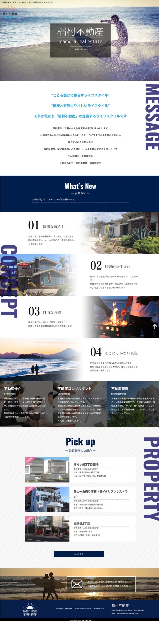 仕様:Wordpressを利用して自社で簡単に更新・スマートフォン・タブレットに対応したレスポンシブ・SSL対応・完全オリジナルデザイン・お問い合わせフォーム設置
